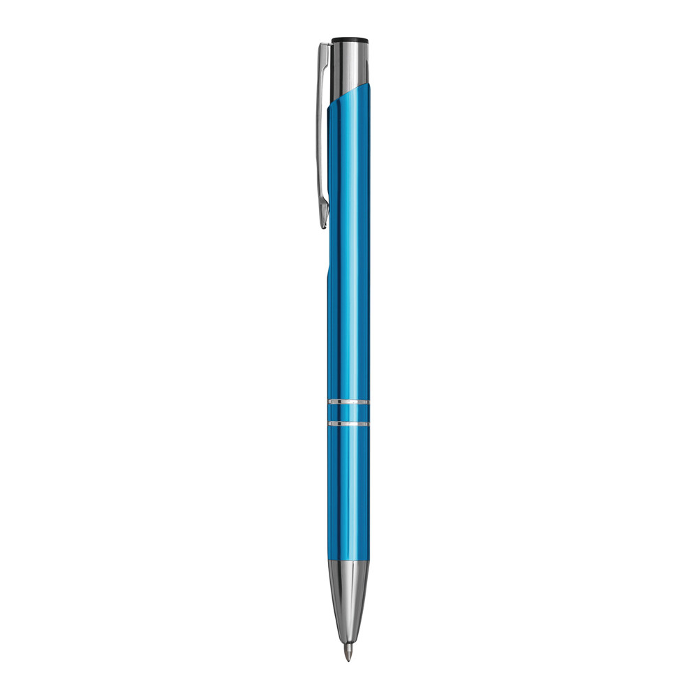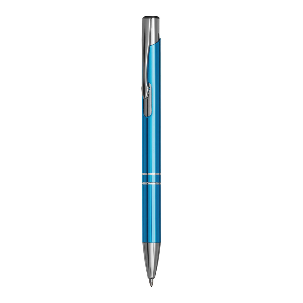 Aluminium-Kugelschreiber TUCSON: mit glänzendem Aluminium-Schaft, Druckmechanismus, Großraummine, blauschreibend