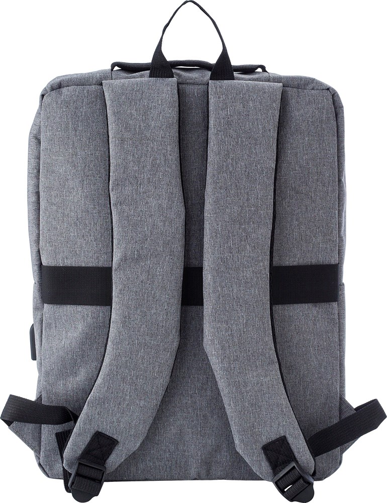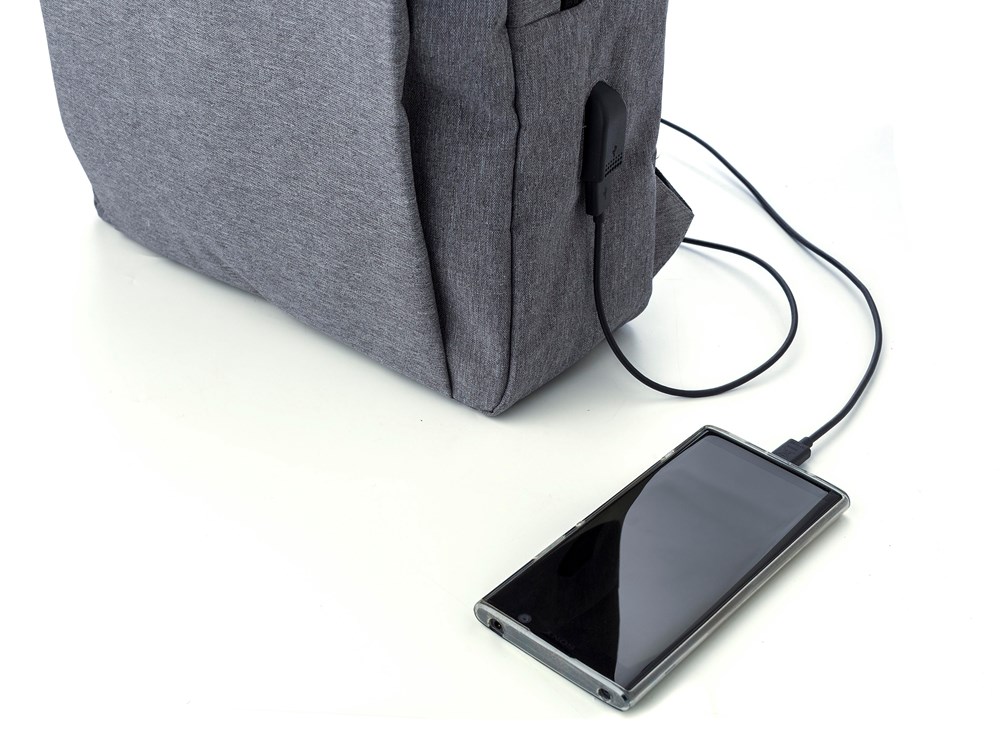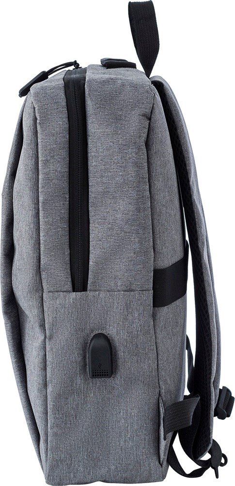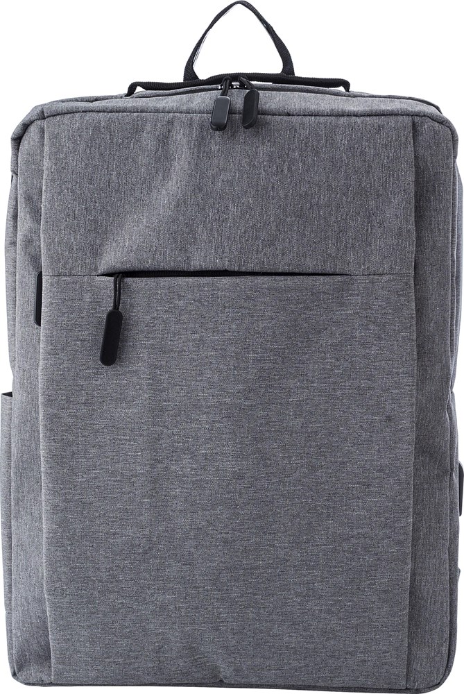 Rucksack aus Polyester (600D) mit Reißverschluss-Hauptfach und Fronttasche. Mit USB-Ausgang an der Seite. Verstellbare gepolsterte Schultergurte.