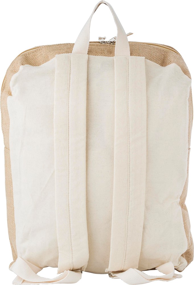 Rucksack aus Jute mit Baumwolldetails. Mit Hauptfach, mit Reißverschluss und Fronttasche. Verstellbare Riemen.