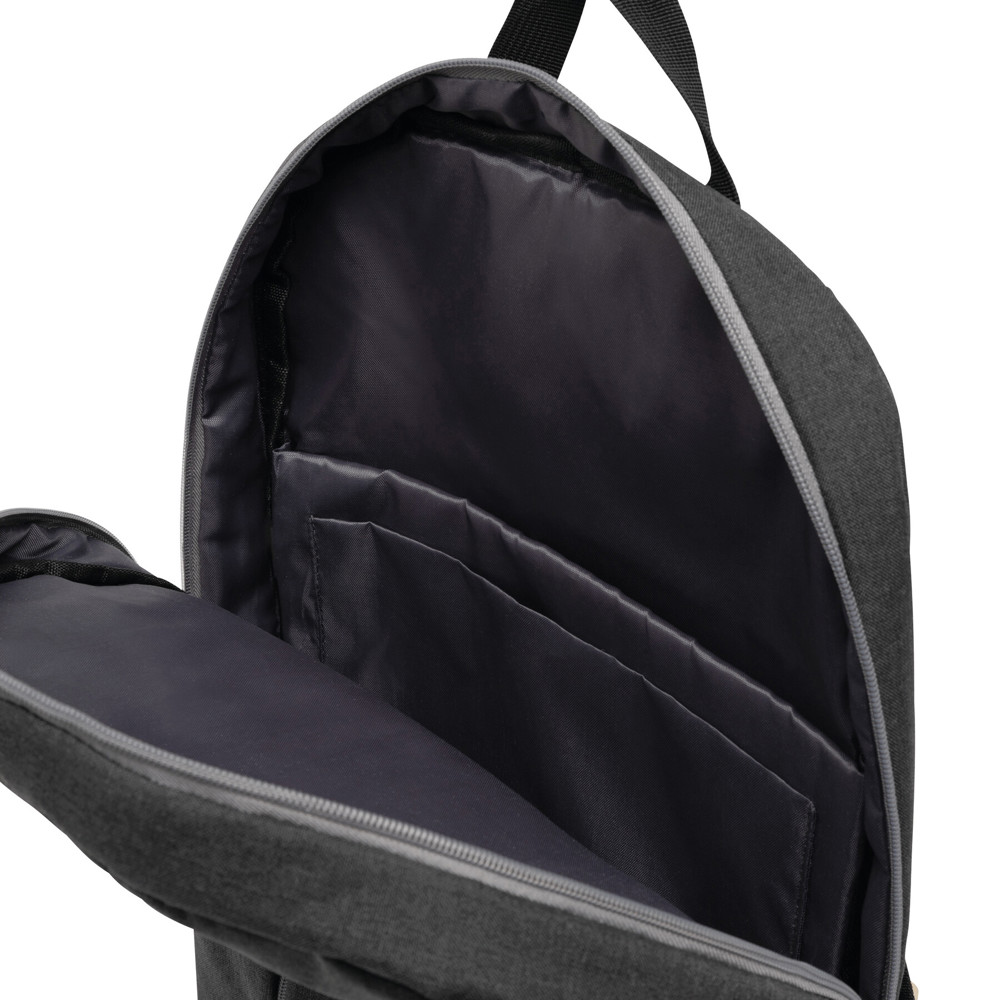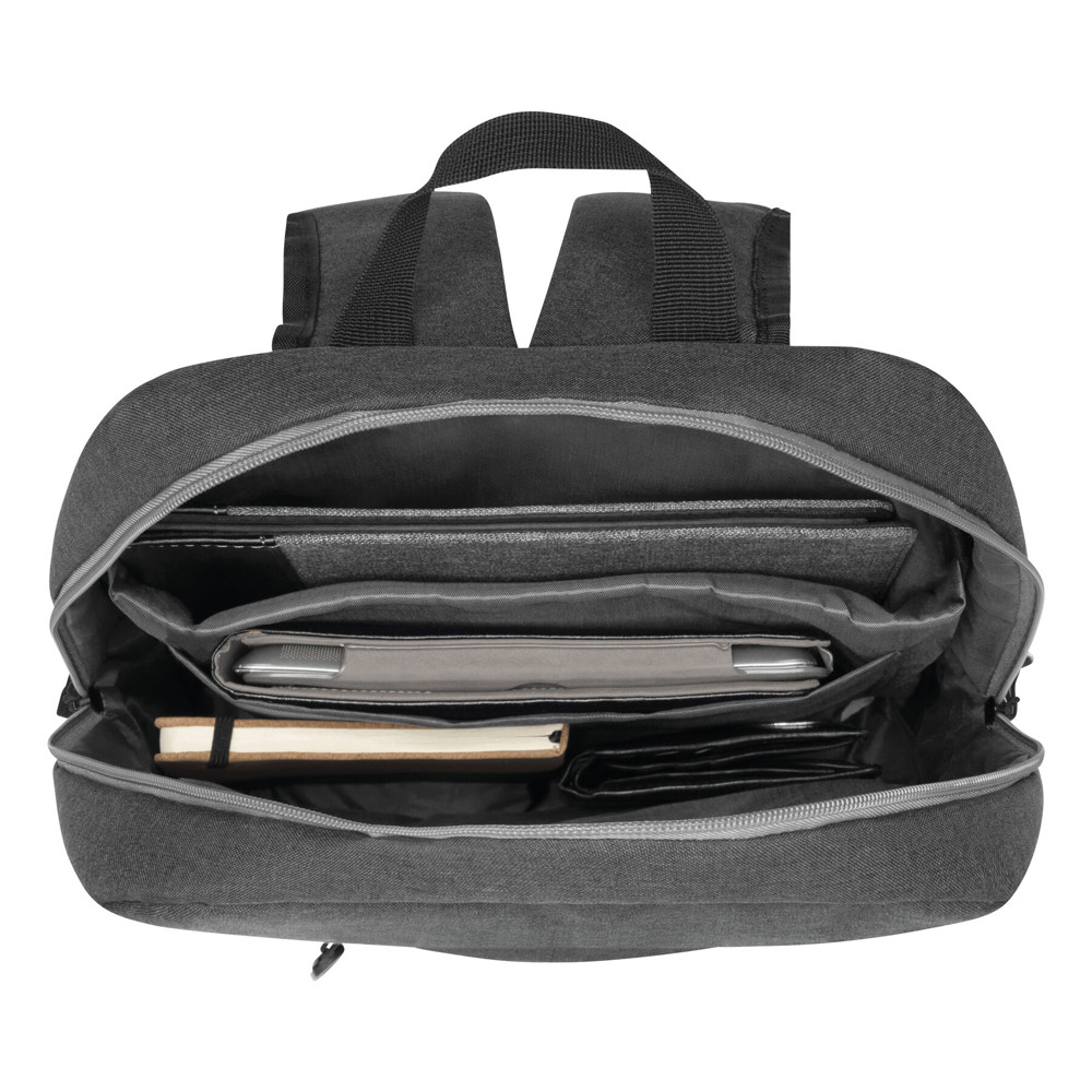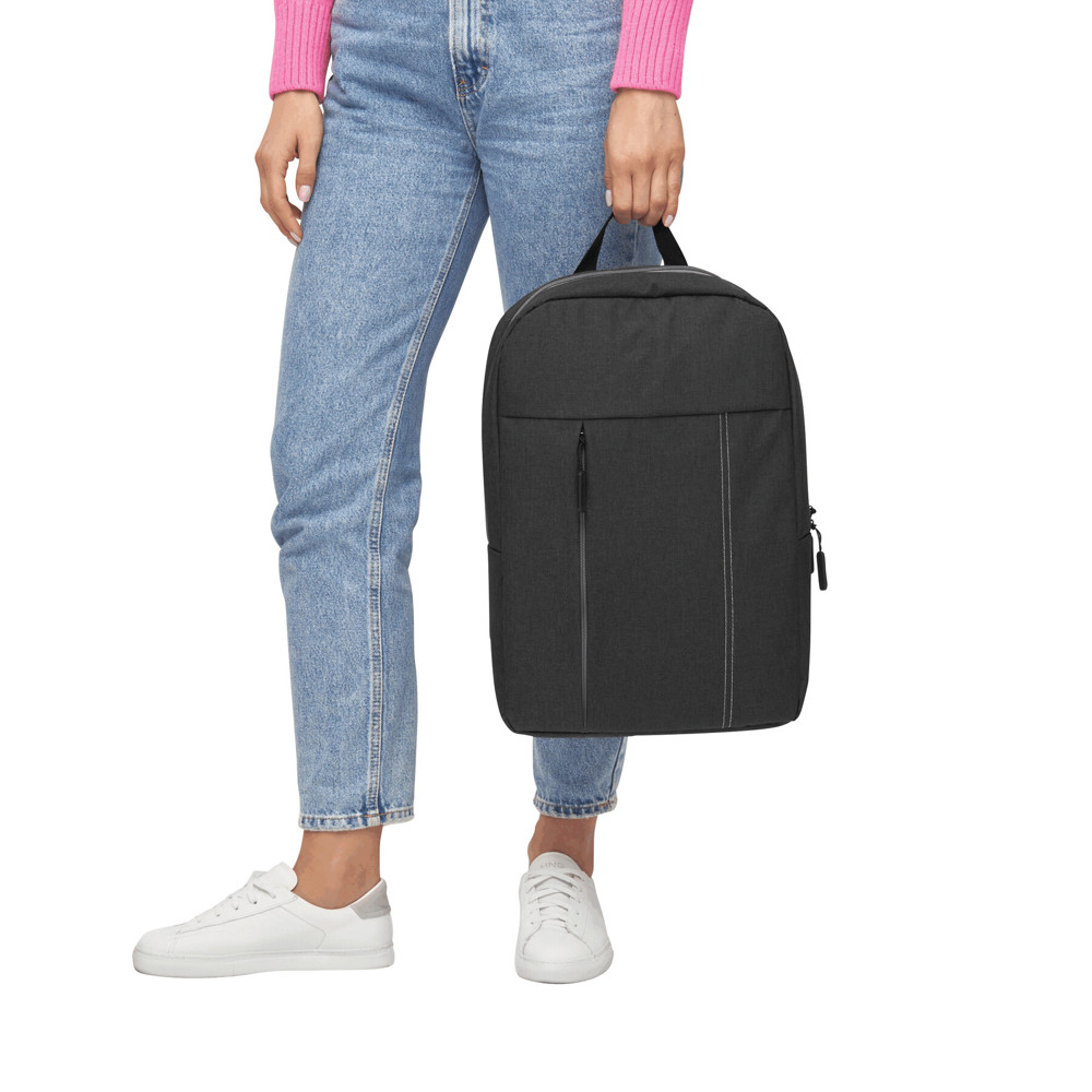 Rucksack FLORENCE: vertikales Reißverschluss-Vorfach, dekorative Stepperei auf der Front, Reißverschluss-Hauptfach mit gepolstertem Innenfach für Laptop oder Tablet, Einsteckfach, Trageschlaufe, gepolsterte Schultergurte in ergonomischer Form und gepolsterter Rückenbereich