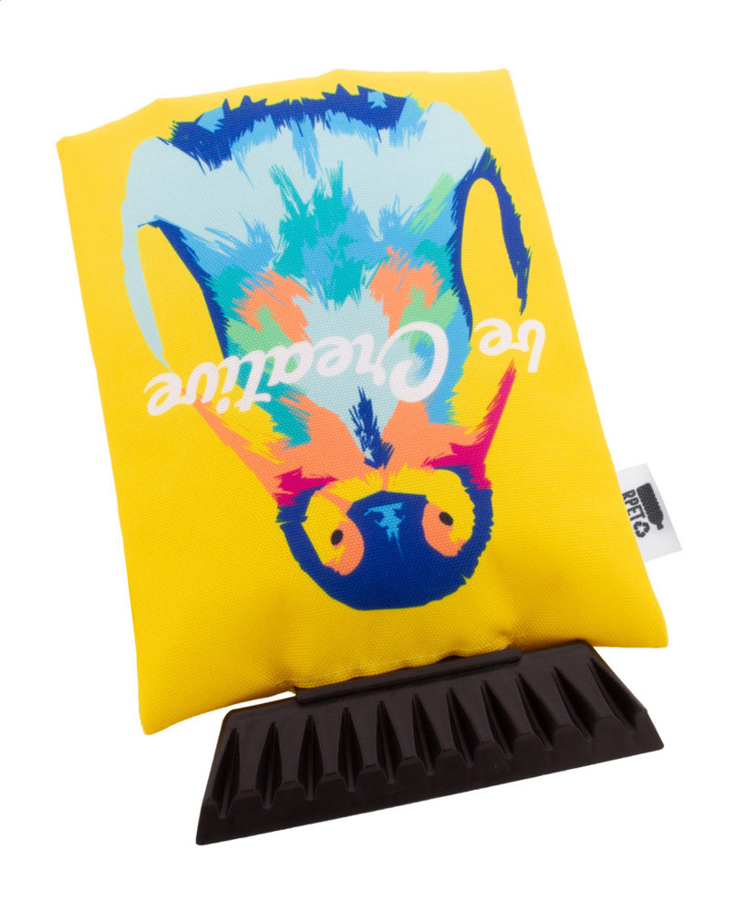 Individueller Eiskratzer aus Kunststoff mit Handschuh aus 600D RPET-Polyester. Der Preis ist inkl. vollflächigem Sublimationsdruck und RPET-Label. Mindestmenge: 50 Stk.