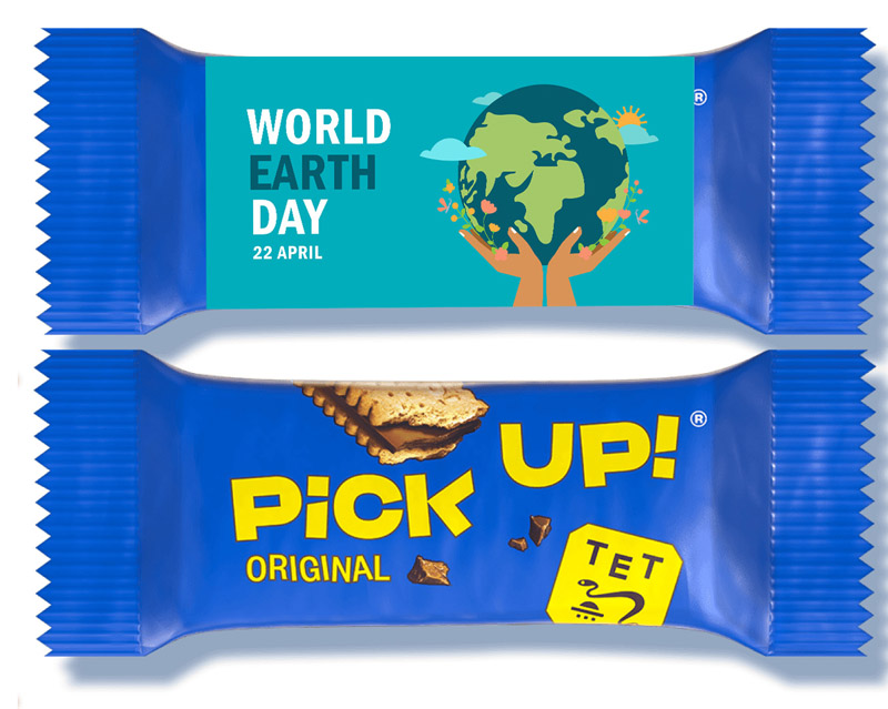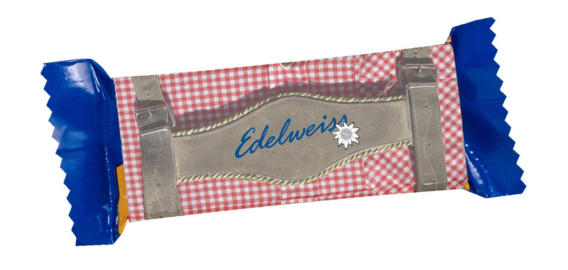Leckere Pick Up Mini Schnitte verpackt im individuell bedruckten Werbeschuber. mehr