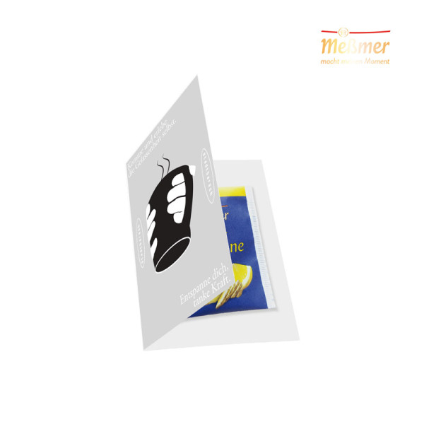 Klappkarte im DinA7 Format mit 1 Meßmer Teebeutel geklebt an der Innenseite der Karte. Die... mehr
