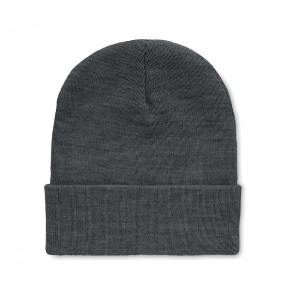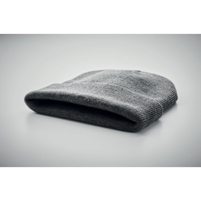Gestrickte Beanie aus softem, elastischem RPET Polyester. Mit Umschlag. Unisex.