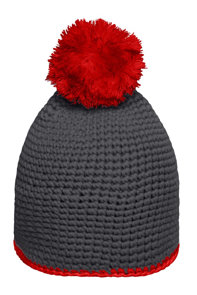 Pompon Hat with Contrast Stripe