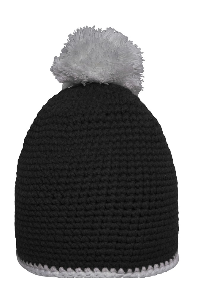 Pompon Hat with Contrast Stripe