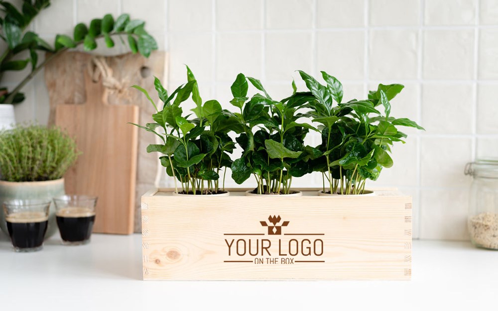 Verschenken Sie Pflanzen! Diese robuste Holzkiste mit Pflanzen ist ein nachhaltiges Geschenk mit einem 3-in-1-Design. Denn die holzbox ist nicht nur der Pflanzentopf, sondern auch die Versandverpackung und das Wasserreservoir für die Pflanzen. Es ist ein verpackungsfreies Geschenk und dank des cleveren Bewässerungssystems muss sich der Beschenkte nicht um die Pflanzen kümmern. Wir gravieren Ihr Logo oder einen Slogan Ihrer Wahl auf die box. Mit diesem umweltfreundlichen Geschenk werden Sie bei Ihren Kunden und Kollegen monatelang im Rampenlicht stehen. Und was dieses Geschenk ganz besonders macht: Bei der Herstellung dieses Geschenks helfen uns Menschen, die auf dem Arbeitsmarkt benachteiligt sind. So überraschen Sie nicht nur die Beschenkten mit diesem grünen Geschenk, auch die Macher werden sich über Ihr Geschenk freuen!