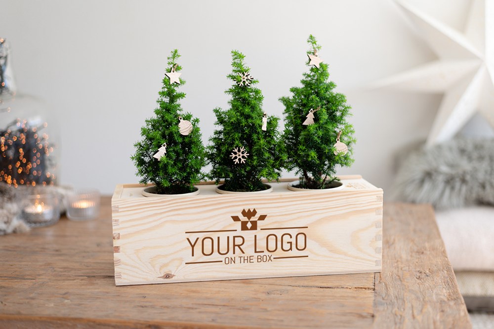Verschenken Sie Pflanzen! Diese robuste Holzkiste mit Pflanzen ist ein nachhaltiges Geschenk mit einem 3-in-1-Design. Denn die holzbox ist nicht nur der Pflanzentopf, sondern auch die Versandverpackung und das Wasserreservoir für die Pflanzen. Es ist ein verpackungsfreies Geschenk und dank des cleveren Bewässerungssystems muss sich der Beschenkte nicht um die Pflanzen kümmern. Wir gravieren Ihr Logo oder einen Slogan Ihrer Wahl auf die box. Mit diesem umweltfreundlichen Geschenk werden Sie bei Ihren Kunden und Kollegen monatelang im Rampenlicht stehen. Und was dieses Geschenk ganz besonders macht: Bei der Herstellung dieses Geschenks helfen uns Menschen, die auf dem Arbeitsmarkt benachteiligt sind. So überraschen Sie nicht nur die Beschenkten mit diesem grünen Geschenk, auch die Macher werden sich über Ihr Geschenk freuen!