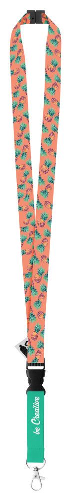 Individuelles Lanyard aus RPET mit abnehmbaren Metallkarabiner und Panikverschluss. Der Preis ist inkl. Sublimationsdruck auf beiden Seiten. Mindestmenge: 100 Stk.