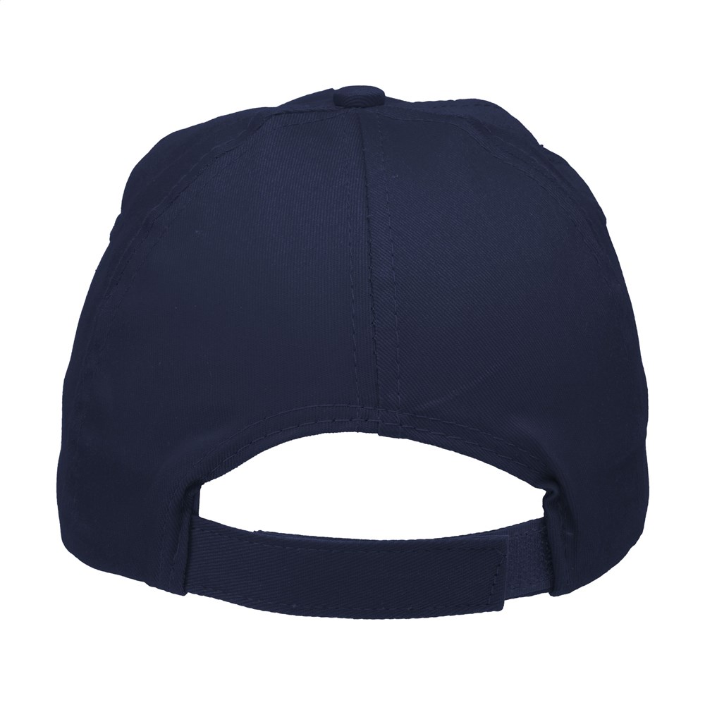 Baseballkappe aus 100% Baumwolle mit vorgeformtem Schirm und verstellbarem Verschluss.