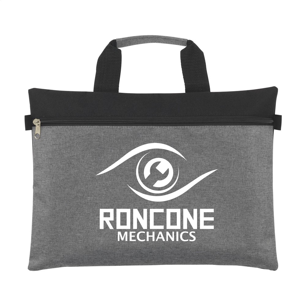 Geräumige Dokumententasche aus 300D-Oxford-Polyester in schicker Kombination aus Heidegrau und Schwarz. Mit verstärktem Griff, Innenfutter und Reißverschluss.