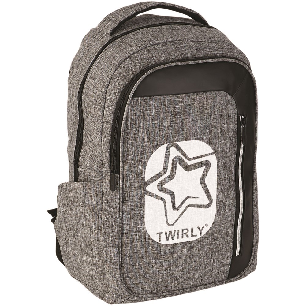 Eleganter, moderner 15" Laptoprucksack bietet eine große Tasche auf der Vorderseite mit Reißverschluss, Schlüsselanhänger und versteckte RFID-Block Technologie für Ihre Karten und Reisepass, um vor Identitätsdiebstahl zu schützen. Das große Reißverschluss Haupfach ist für ein 15" Laptop und bietet ein separates gepolstertes Fach für IPad oder Tablet. Der vordere vertikale Reißverschluss soll Ihnen einen schnellen Zugriff auf die Vordertasche geben. 2 zusätzliche Seitentaschen bieten weiteren Stauraum und die verstellbaren, gepolsterten Schultergurte mit Gewebedetails sind bequem und erlauben Ihnen weitere Reiseutensilien anzuclippen. Der Tragegriff und die Trolley Befestigung machen das Reisen einfach. Es kann zu geringfügigen Farbveränderungen des eigentlichen Produkts kommen, die auf die Beschaffenheit der Gewebefarbstoffe, Gewebe und Drucke zurückzuführen sind.