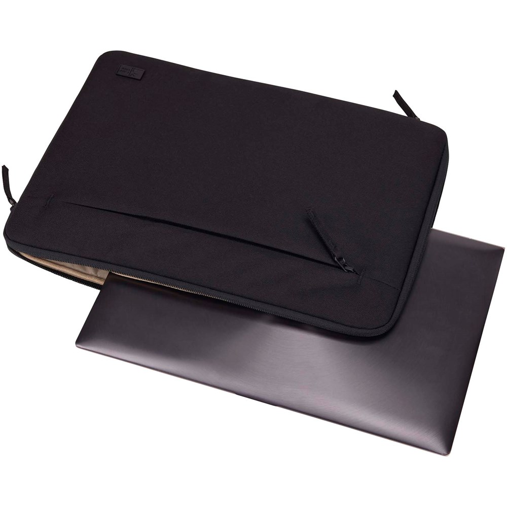 Die 14" Laptophülle Case Logic Invigo wird aus recycelten Materialien hergestellt und hat eine 10 mm dicke, gepolsterte Innenseite zum Schutz des Laptops. Diese Hülle besteht aus 100 % recyceltem 600D-Polyester und einem 150D-Polyesterfutter. In der Reißverschlusstasche auf der Vorderseite lassen sich Stromkabel und kleines Zubehör bequem verstauen. Die Dreiviertel-Reißverschlussöffnung ermöglicht den Zugriff auf den Laptop von oben oder von der Seite der Hülle.