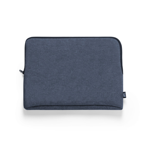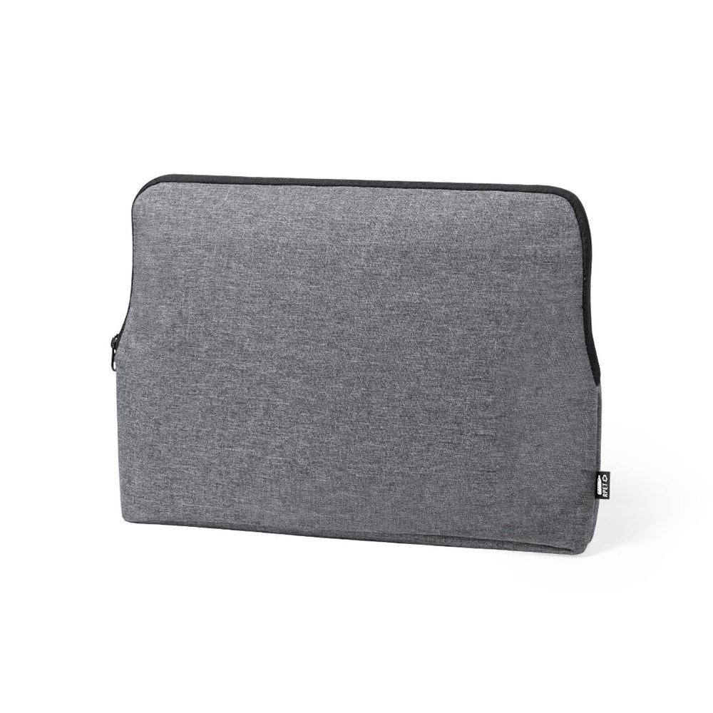 Laptop-Hülle der Natur Line mit widerstandsfähigem 600D RPET Melange-Effekt, aus recyceltem Kunststoff hergestellt, um die Wiederverwendung von Kunststoffabfällen zu fördern und einen Beitrag zur Nachhaltigkeit des Planeten. Schwarze Details und Hauptfach mit Reißverschluss. Vollständig gepolsterter und gefütterter Innenraum, mit RPET-Plakette auf dem Außenetikett.