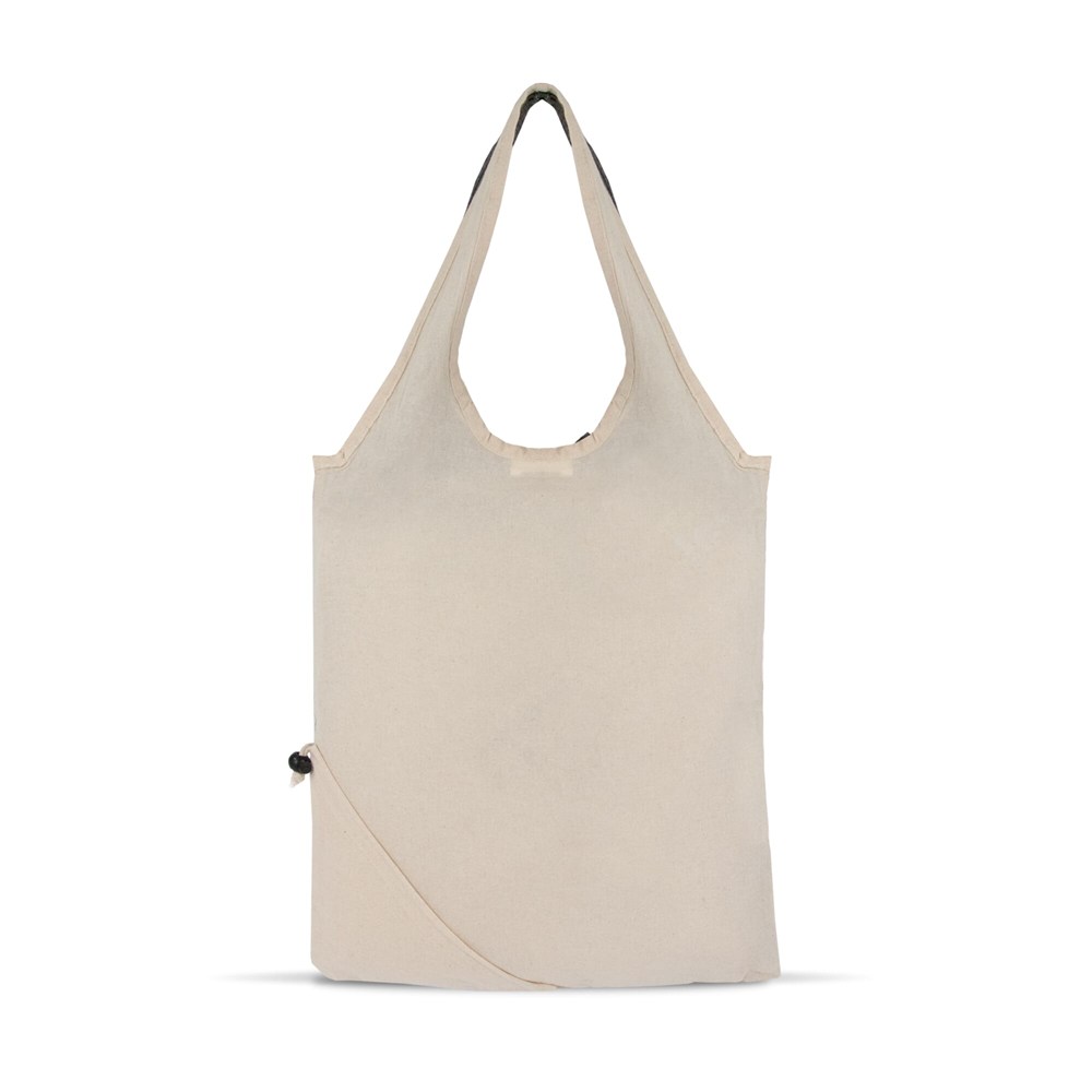 Diese leichte Einkaufstasche aus Baumwolle ist ideal für den Transport Ihrer Einkäufe. Dank der kleinen aufgenähten Tasche lässt sich die Tasche in sich selbst zusammenfalten und nimmt so weniger Platz ein. Sie ist aus einer Kombination von OEKO-TEX® Baumwolle und recycelter Baumwolle hergestellt.
