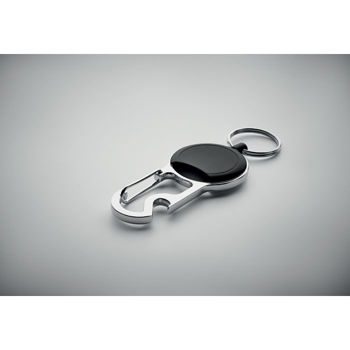 Einziehbarer Kartenhalter aus ABS mit Clip, Schlüsselring und Kapselheber.