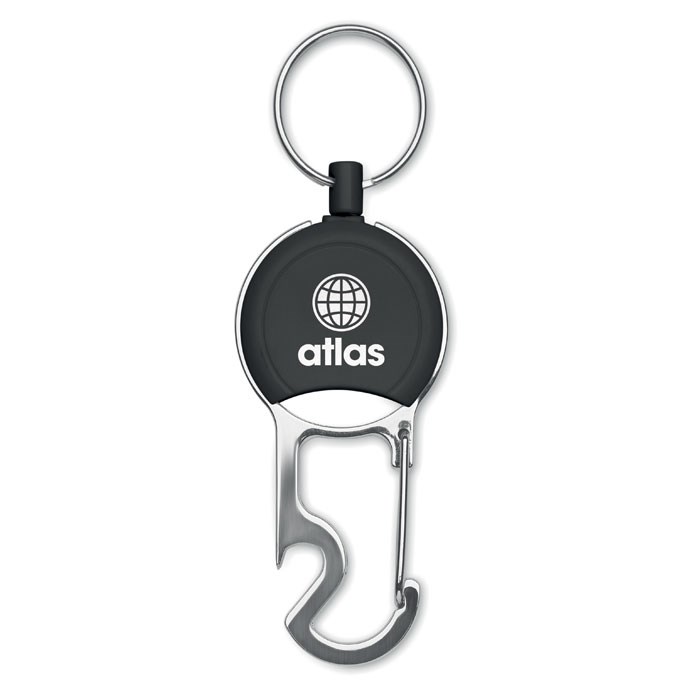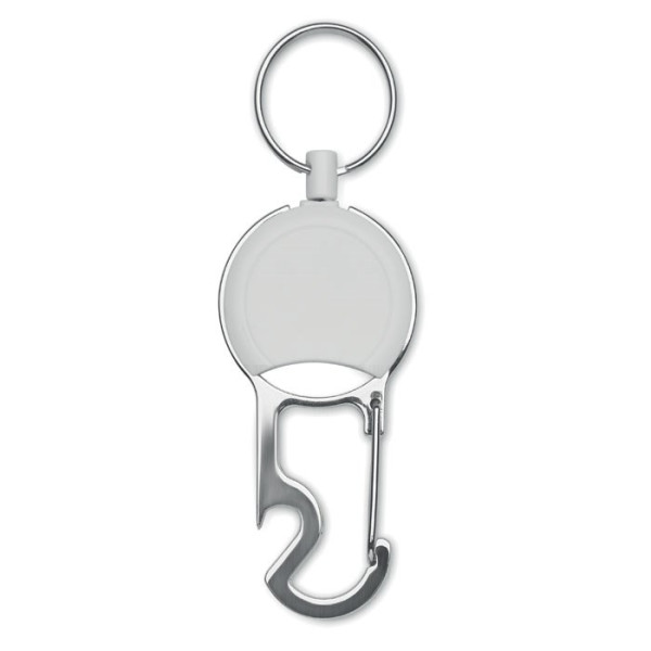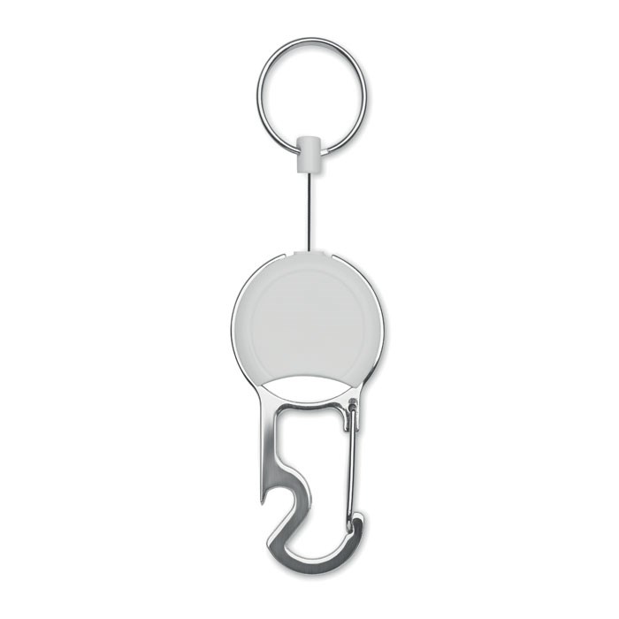 Einziehbarer Kartenhalter aus ABS mit Clip, Schlüsselring und Kapselheber.