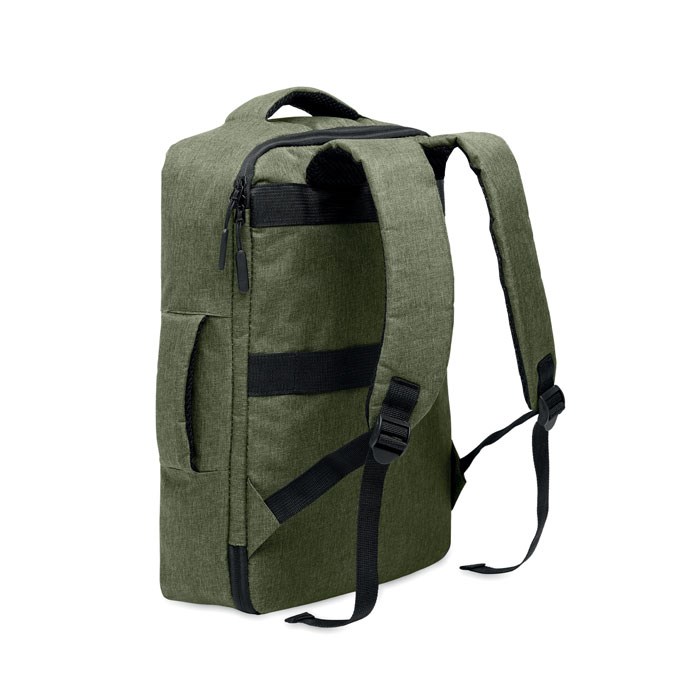Schlanker 15'''' Laptop-Rucksack aus 300D RPET mit 210D RPET-Futter. Laptopfach, 2 Innentaschen, 2 Stiftfächer, gepolsterte Tragegriffen. Weich gepolsterte Rücken- und Schultergurte. Rückseitige Trolley-Halterung.