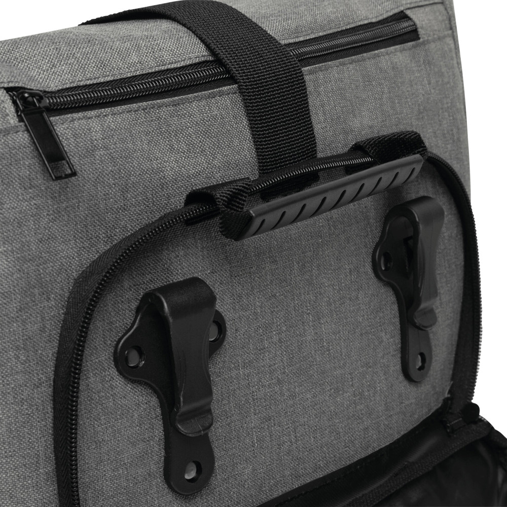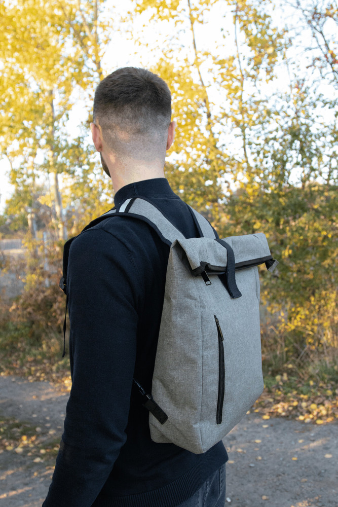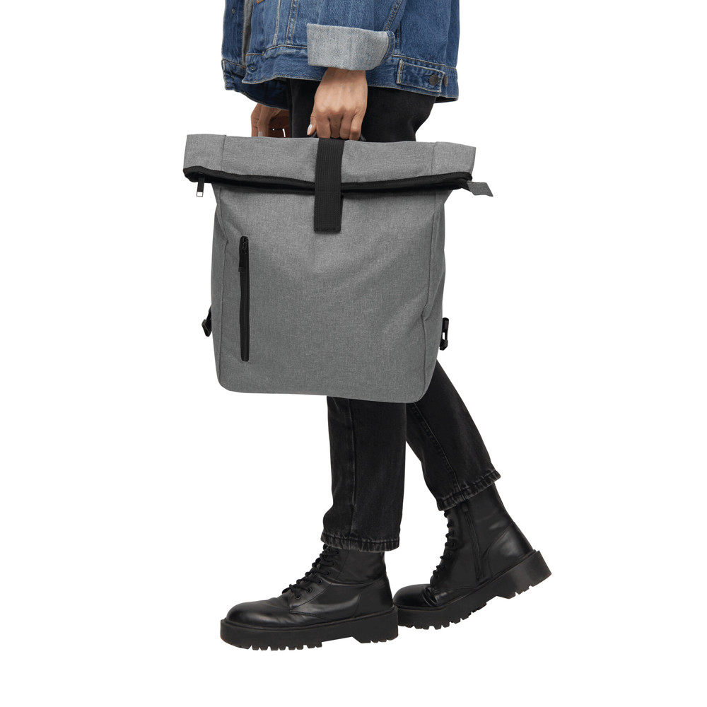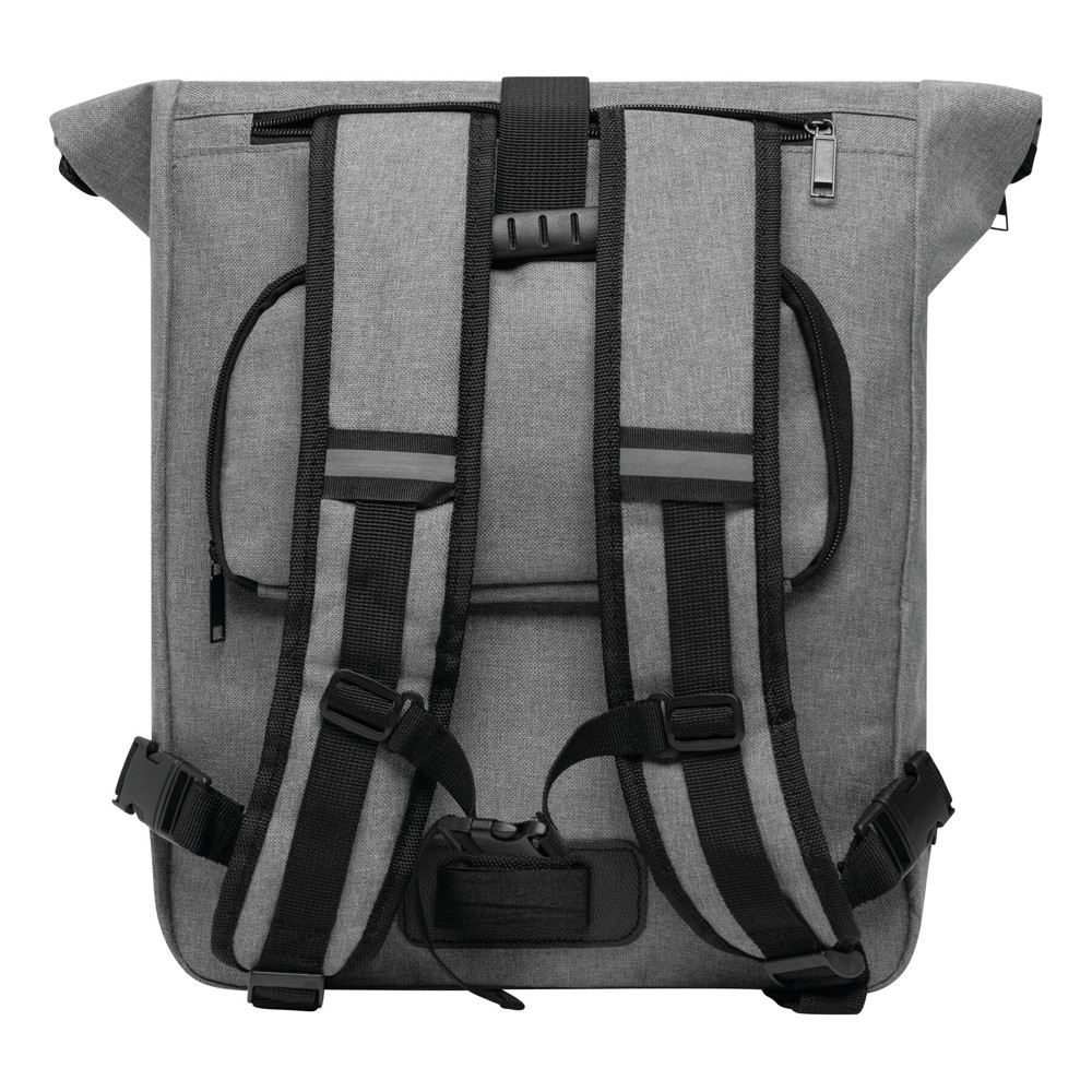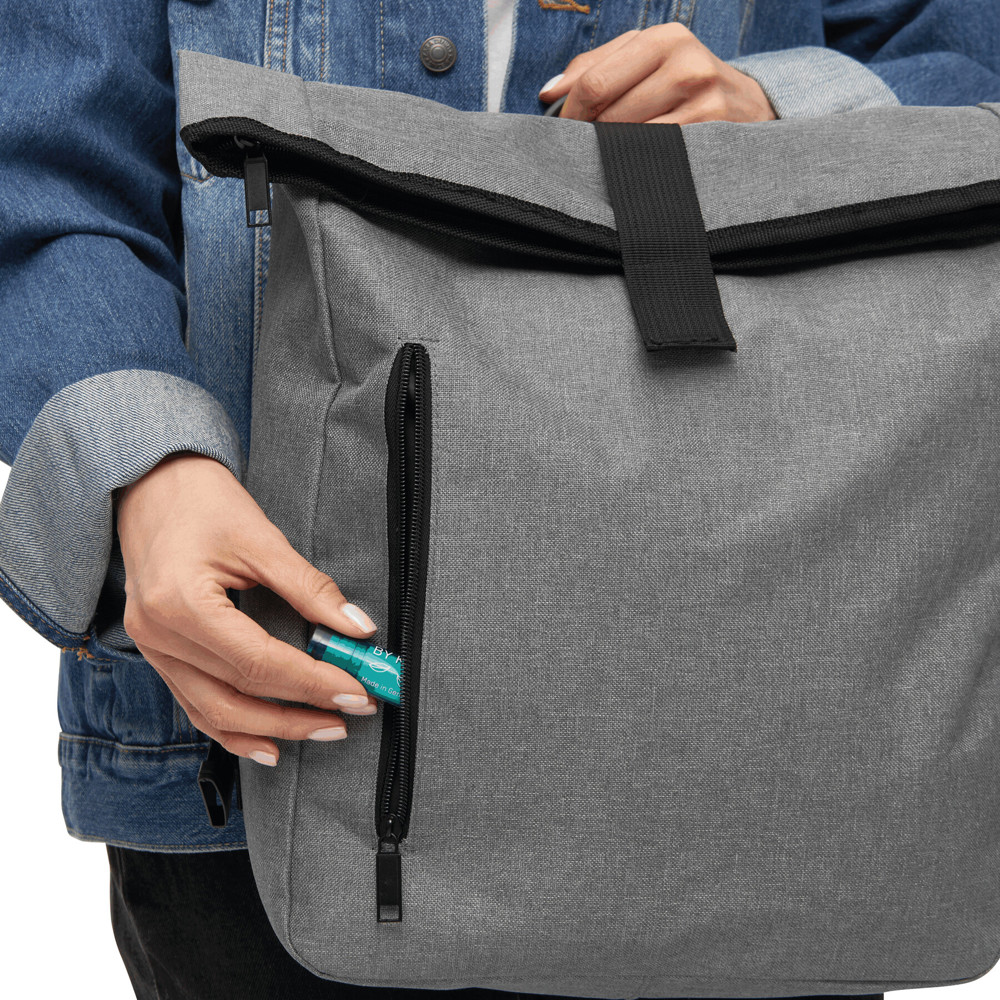 Fahrradrucksack BIKE RACE: Reißverschluss-Hauptfach mit gepolstertem Innenfach für Laptop oder Tablet, aufrollbar und mit Klettverschluss verschließbar, gepolsterte Schultergurte, Reißverschluss-Vortasche, abdeckbare Gepäckträgerhalterungen, Tragegriff, Schultergurte können in einem Reißverschlussfach verstaut werden