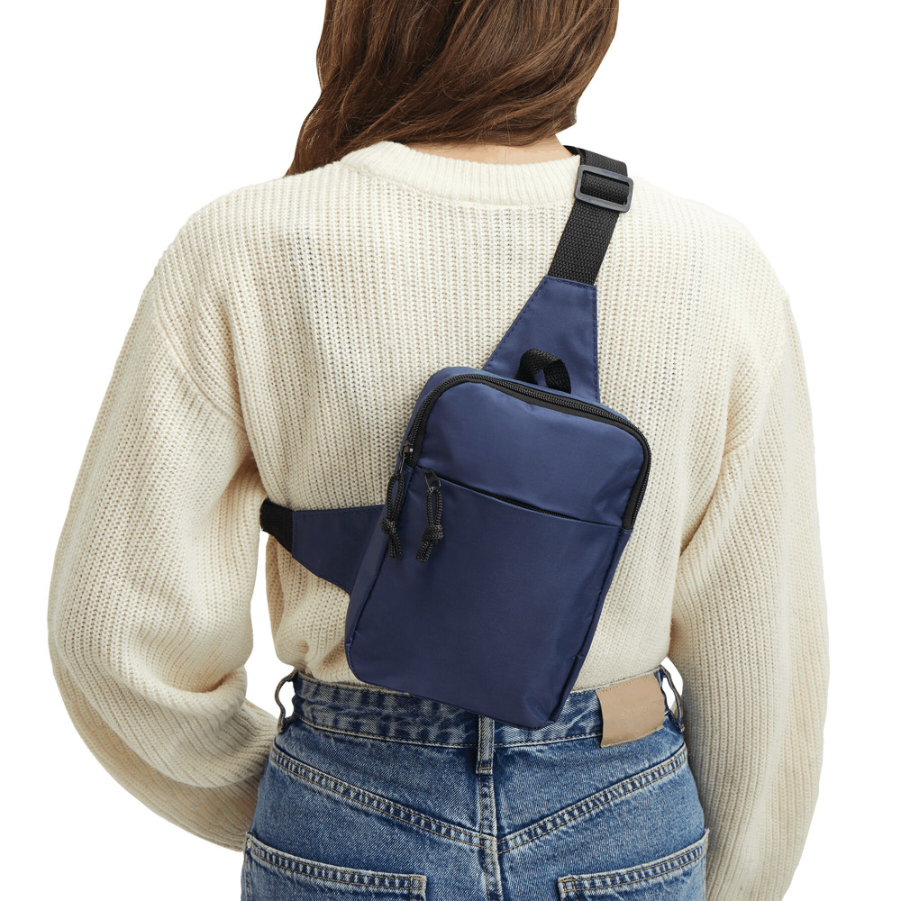 Schultertasche NEAR BY: 1 Reißverschluss-Hauptfach, innen mit 1 Steckfach, 1 Reißverschluss-Vorfach, 1 Aufhängeschlaufe, verstellbarer Schultergurt mit Schnappverschluss