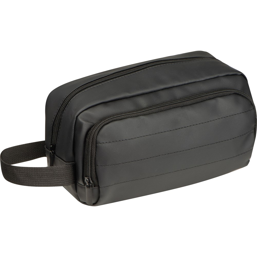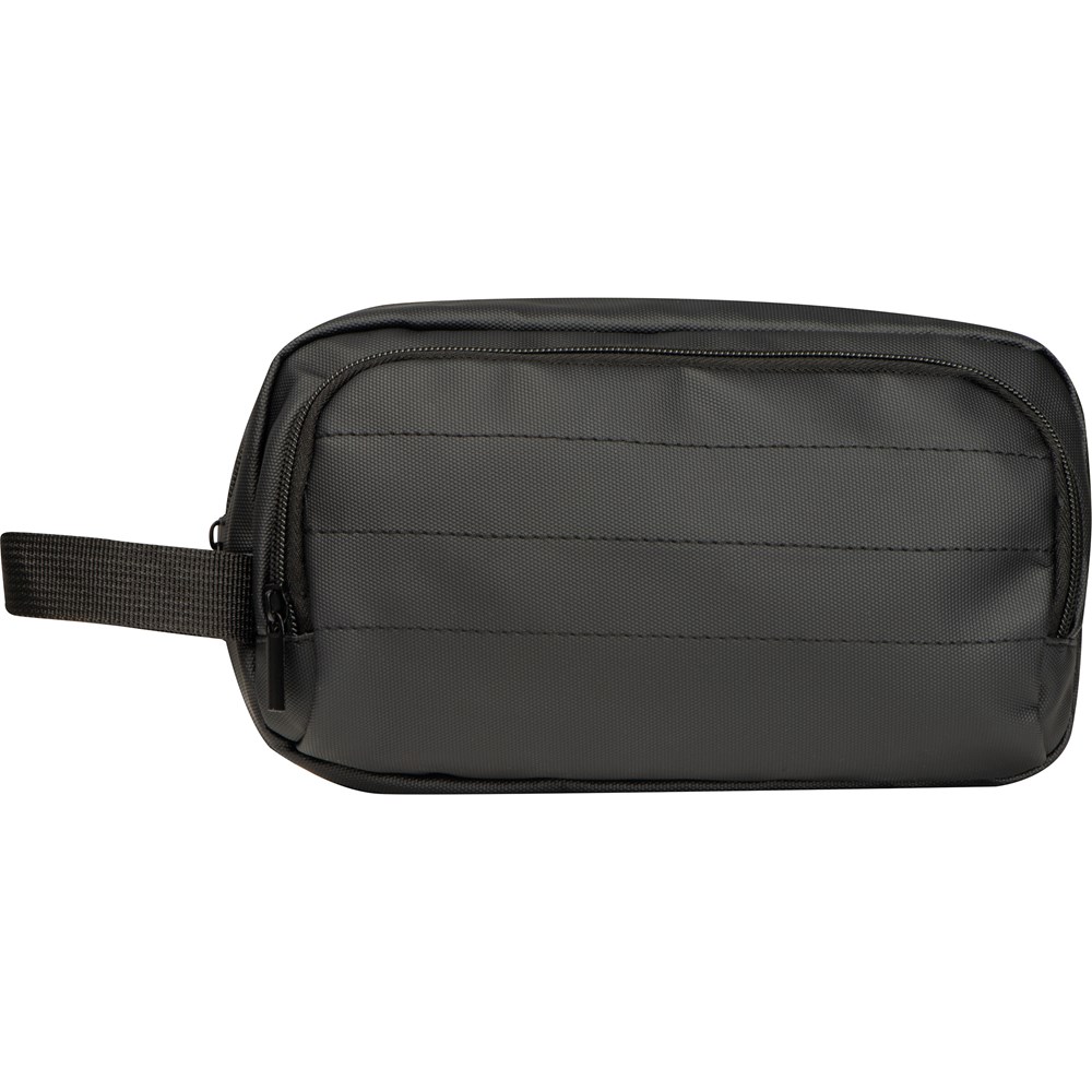 Hochwertige gepolsterte Kulturtasche aus Polyester mit PU-Beschichtung. Sie hat neben dem Innenfach mit Reißverschluss noch ein Reißverschlussvorfach sowei eine Trageschlaufe. Robust und wasserabweisend, perfekt für Reisen und den täglichen Gebrauch. Ihrer Werbung drucken wir auf den Kulturbeutel.
