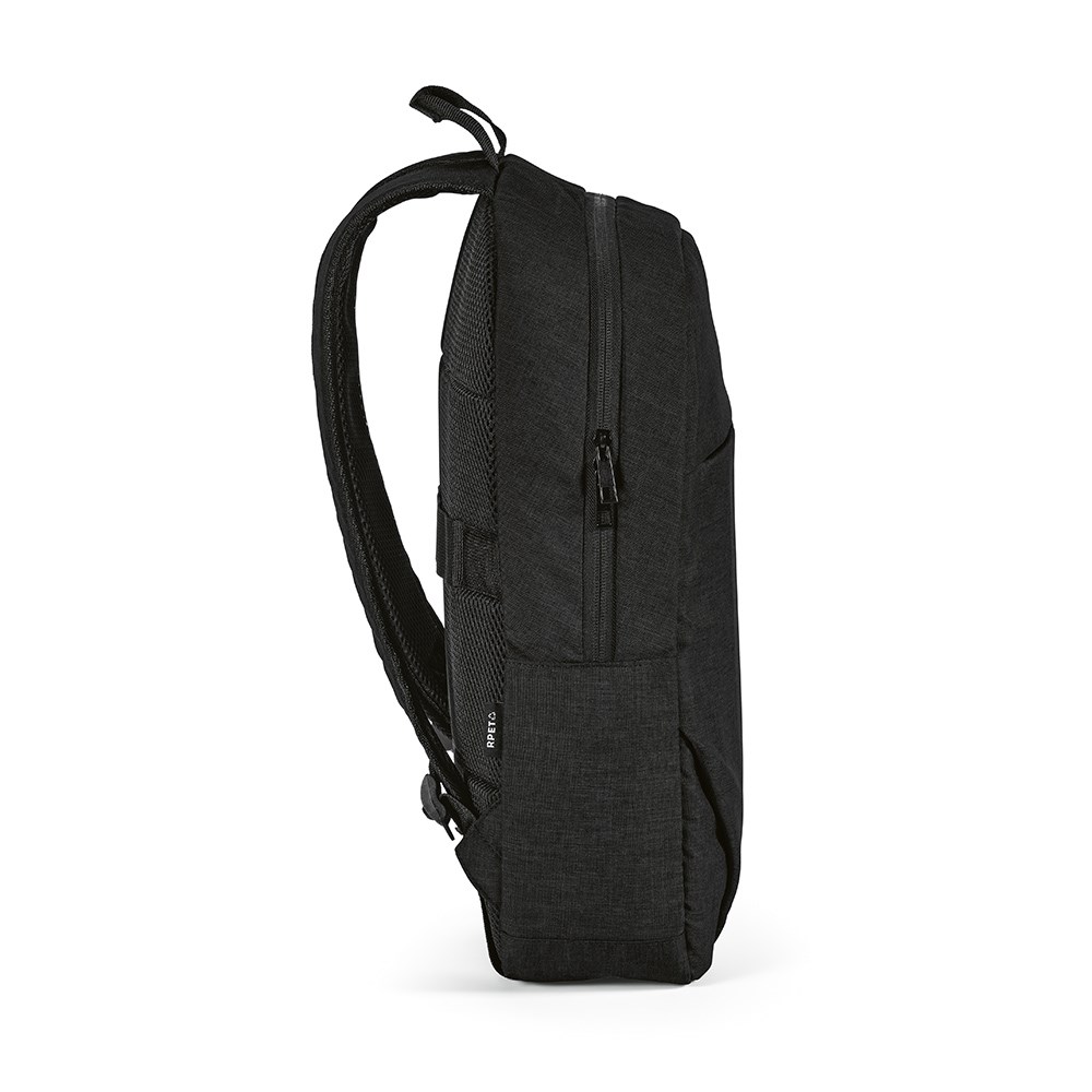 In unserem 300 D rPET-Rucksack mit 18L Fassungsvermögen trifft Effizienz auf Nachhaltigkeit. Seine Seitentasche und ein Vorderfach mit Reißverschluss sorgen für zusätzliche Nützlichkeit. Der verstärkte Griff an der Oberseite erleichtert die Mobilität in der Stadt und sorgt für Haltbarkeit.