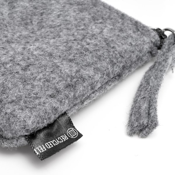 Das Innere des Portemonnaies bietet einen kompakten, aber ausreichenden Stauraum für Münzen, Schlüssel, Kopfhörer oder andere kleine Gegenstände, die Sie mitnehmen möchten. Der bei der Herstellung verwendete recycelte Filz ist haltbar und widerstandsfähig und schützt Ihr Hab und Gut vor möglichen Schäden.