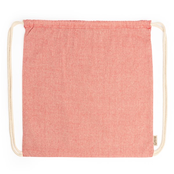 Rucksack aus 120 g/qm recycelter Baumwolle mit Kordelzug, marmorierter Oberfläche und naturfarbenen Kordelzügen. Erhältlich in verschiedenen Farben.