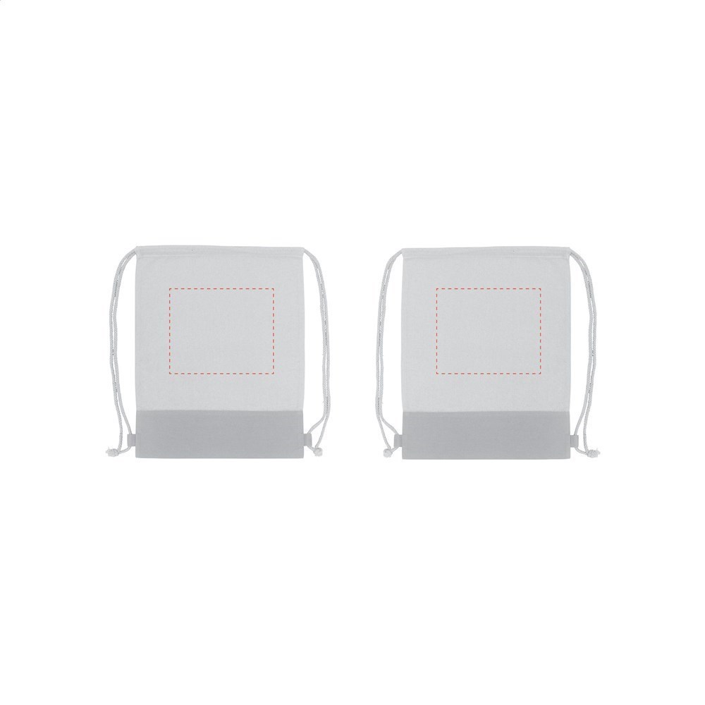 Rucksack mit Zugkordel aus 100% Baumwolle (125 g/m²) und farbigem Einsatz. Fassungsvermögen ca. 8 Liter.