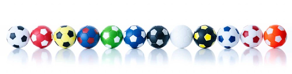 Für jeden Tischkickerspieler und Fußball-Fan gibt es jetzt eine riesige Auswahl an unterschiedlichen Kickerball Farben. Ob im traditionell schwarz-weißem Panel Look oder im Style von Barcelona/Bayern/Dortmund/ Schalke – hier fi ndet jeder Kickerfan die richtigen Farben seines Lieblingsvereins.