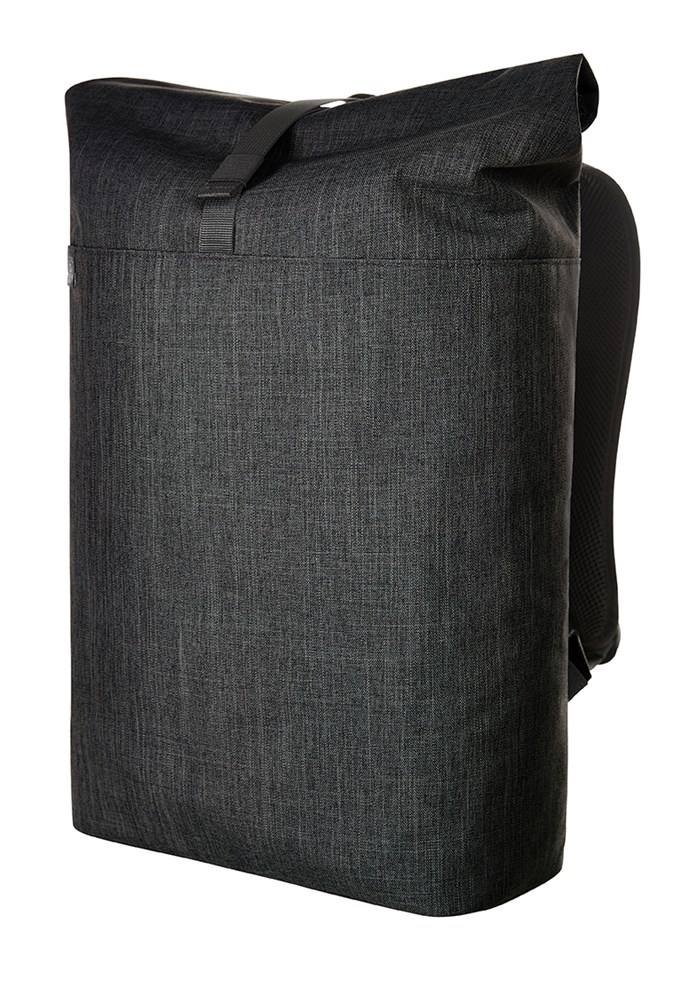 urbaner Rucksack mit Magnet- und Wickelverschluss; geräumiges Hauptfach mit gepolstertem Notebookfach; rPET Obermaterial; rückseitige Reißverschlusstasche; aufwändig gepolsterter Rücken mit verstecktem Reißverschlussfach; gepolsterter Boden; längenverstellbare gepolsterte Schultergurte mit Gummischlaufen zum Befestigen von z.B. Sonnenbrille; Handgriff