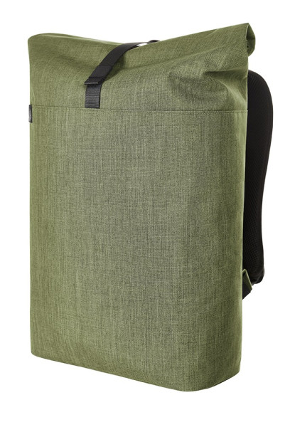 urbaner Rucksack mit Magnet- und Wickelverschluss; geräumiges Hauptfach mit gepolstertem Notebookfach; rPET Obermaterial; rückseitige Reißverschlusstasche; aufwändig gepolsterter Rücken mit verstecktem Reißverschlussfach; gepolsterter Boden; längenverstellbare gepolsterte Schultergurte mit Gummischlaufen zum Befestigen von z.B. Sonnenbrille; Handgriff