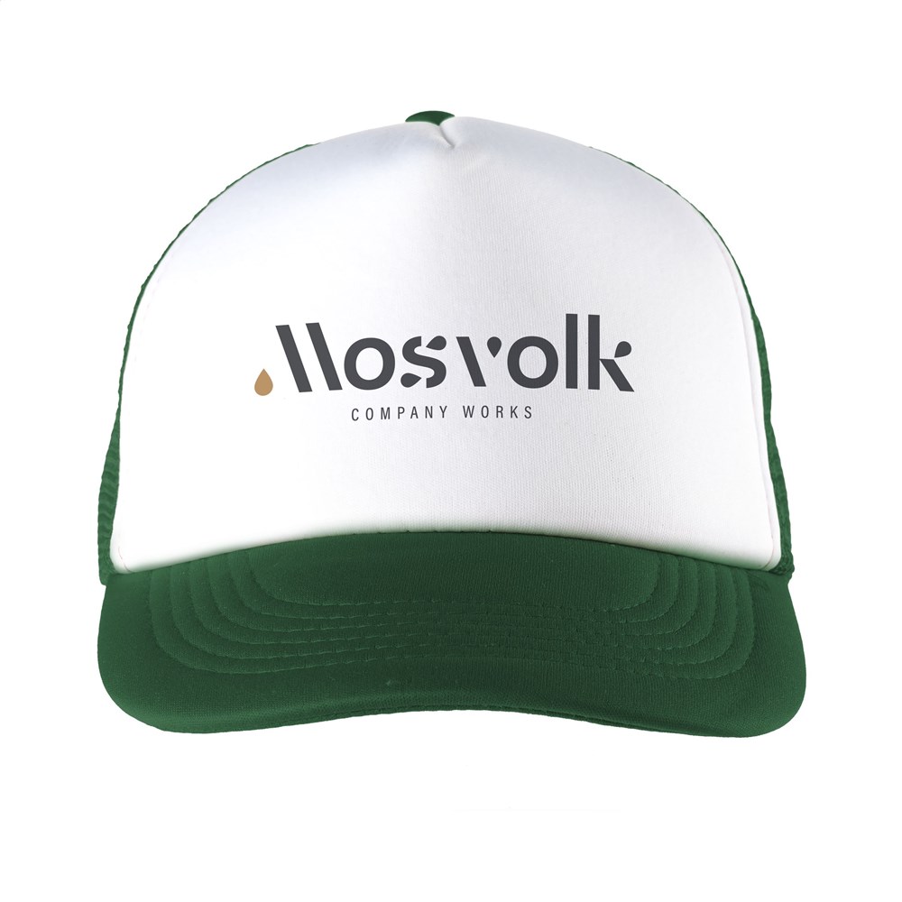 Baseball-Cap mit vorgeformtem Schaumstoffschirm, Schaumstoffvorderseite und Kunststoff-Rückseite in Netzstruktur für optimale Belüftung. Verstellbarem Kunststoffverschluss.