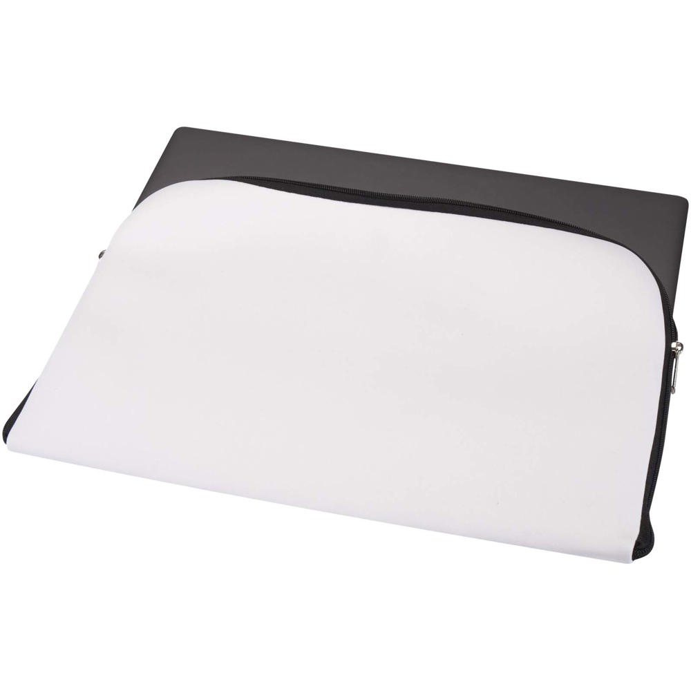 Die Mari 15"-16" Laptophülle ist aus Neopren gefertigt und bietet den nötigen Schutz für unterwegs Die Hülle kann sowohl auf der Vorder- als auch auf der Rückseite vollfarbig mit einem Simulationsdruck bedruckt werden und ist mit schwarzem oder weißem Reißverschluss erhältlich. Hergestellt in Europa.