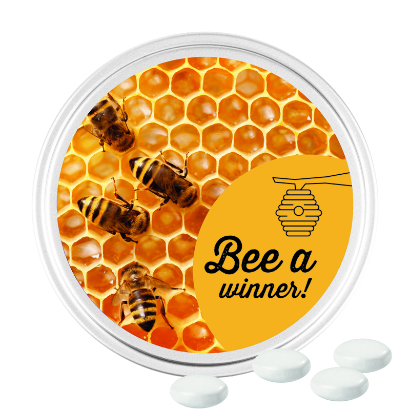 Runde Dose mit Stülpdeckel, weiß, aus Metall, individuell bedruckt. Frische-Versiegelung rundum... mehr
