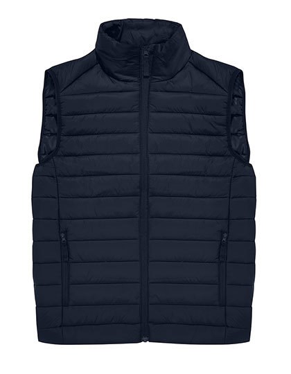 Gender Neutral | Außenmaterial: 100% recyceltes Nylon (Taft 210 T), Polsterung: 100% recycelter Polyester (Taft 210 T), Futter: 100% recycelter Polyester | DWR-Beschichtung (Durable Water Repellent) | Frei von PFAS/Fluorin | Isolierende Polyesterpolsterung | Gepolsterter Stehkragen | Durchgehende Windschutzpatte innen | Zwei Fronttaschen mit Reißverschluss | Kein Label