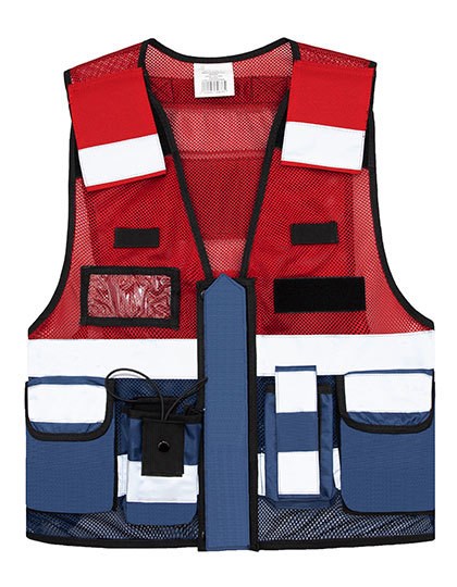 Mesh Tactical Weste mit markanten Reflexstreifen | Ideal für heiße Einsatzgebiete | Durchgehender Reißverschluss vorne, verstärkt durch eine Klappe | Flexibler Einsatz durch diverse Taschen | Verschiedene austauschbare Patches, die ebenfalls als Druckfläche dienen | Tear-Off-Label | Praktische Doppelgrößen mit Klettverschlüssen zur individuellen Anpassung