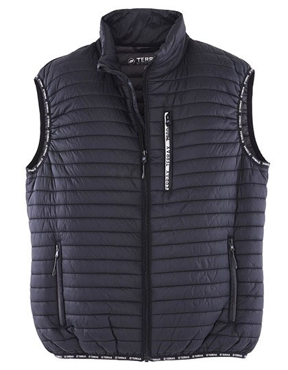Stehkragen | Lasche zum Aufhängen im Nacken | Reißverschluss mit innenliegender Sturmblende und Kinnschutz | Drei Reißverschlusstaschen | Terrax-Workwear-Labelprint auf Reißverschluss und auf elastischem Saum | Kontrastdetails
