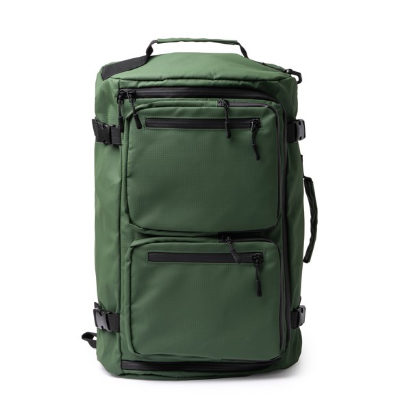 Multifunktionale Tasche/Rucksack aus PU mit 600D Ripstop-Polyester. Wasserdicht. Großes Hauptfach mit voller Öffnung. Mehrere Außentaschen. Schuhfach. Verstärkter Griff. Alle Fächer haben einen wasserdichten Reißverschluss. Einschließlich gepolstertem Schultergurt mit Rucksackfunktion.