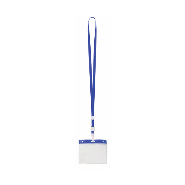 Identifikations-Hülle aus PVC mit farblich passendem Lanyard und Befestigungskarabiner. Runde Druckfläche.