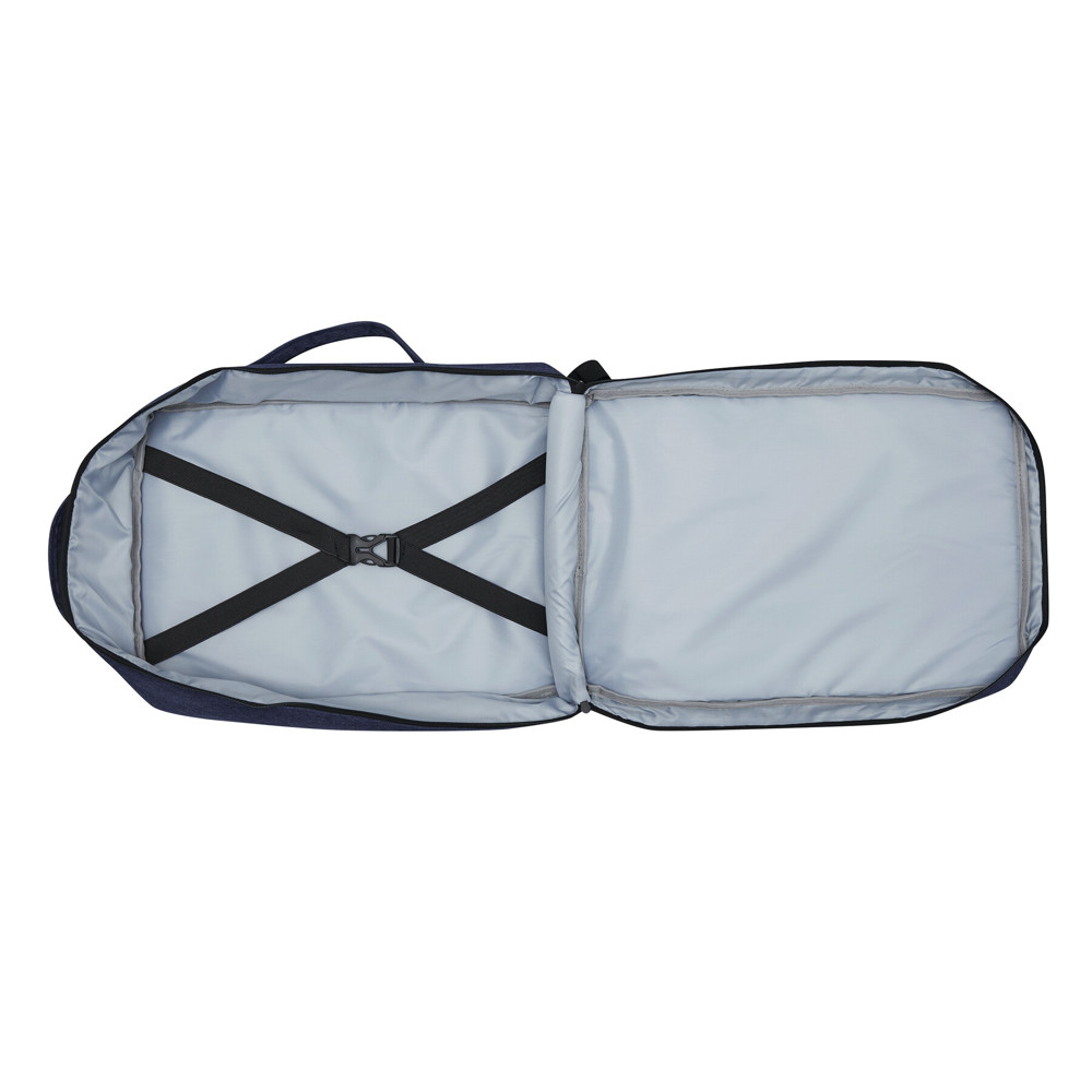 Rucksack STEWARD: 2 Reißverschluss-Vorfächer, eins davon mit Organizer (3 Steckfächer, 2 Stifteschlaufen), 1 großes gepolstertes Reißverschluss-Hauptfach mit Packgurt, 1 gepolstertes Reißverschluss-Laptopfach, jeweils 1 verstärkter Top- und Seitengriff, gepolsterte Schultergurte in ergonomischer Form und gepolsterter Rückenbereich, Gurt als Reporterfunktion auf der Rückseite, seitlich je 2 Kompressionsgurte mit Schnappverschluss