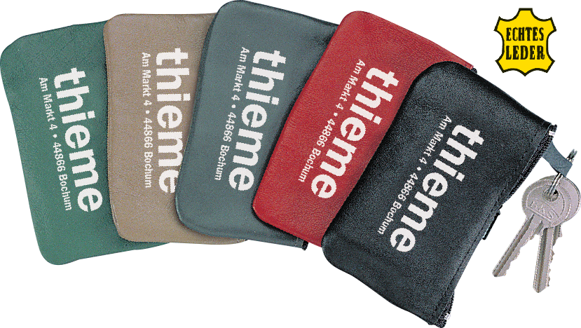 Lederschlüsseltasche "LEONARDO" in guter, solider Verarbeitung mit Nylonreißverschluss. Lieferung erfolgt in schwarz. (Format: ca. 115 x 75 mm)