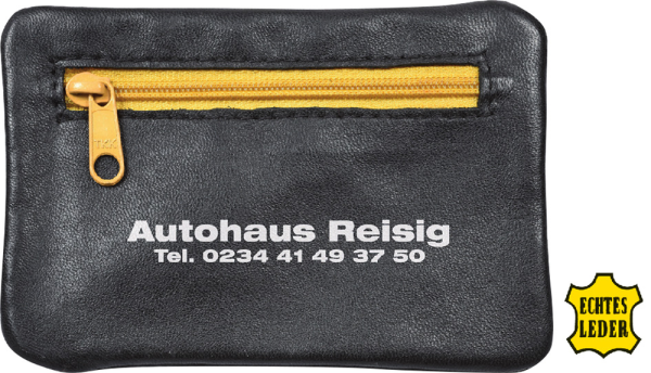 Schlüsseltasche „TRENDY“ aus echtem Leder mit 2 bunten Reißverschlüssen versehen. Auffallend anders. (Format: ca. 110 x 70 mm)