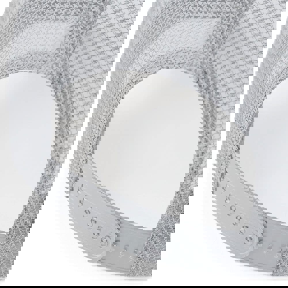 100 % Baumwolle Frontpanel und Schirm/Rückpanel aus Netzgewebe 100 % Polyester. Cap für Kinder mit 5 Panels und vorgeformtem Schirm, die mit einem Plastikschieber im Retro-Snapback-Stil verstellt werden kann. Abtrennbares TearAway-Etikett, einfache Umetikettierung.