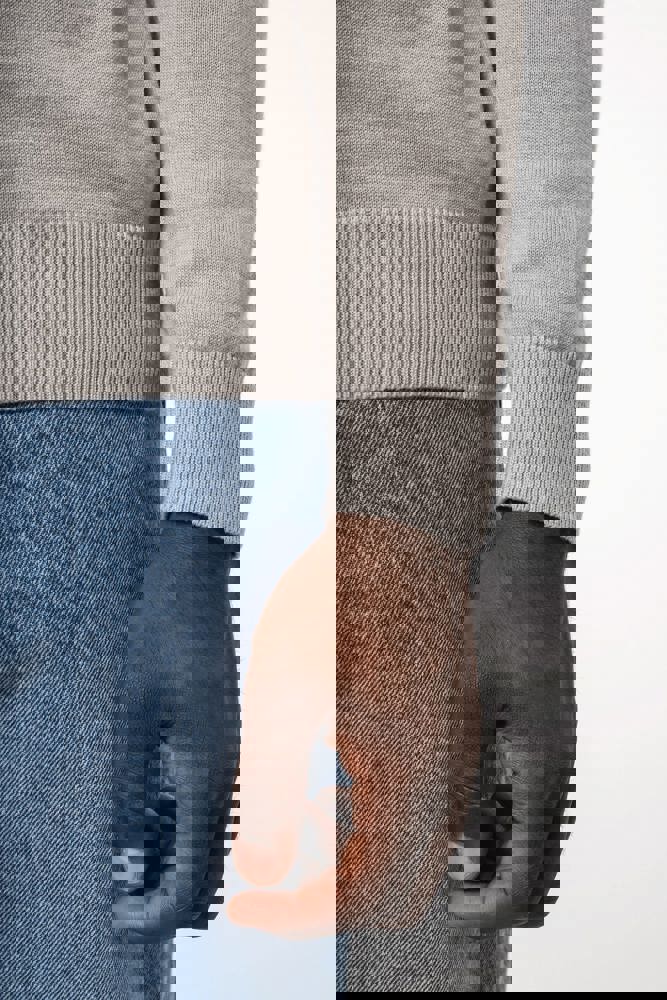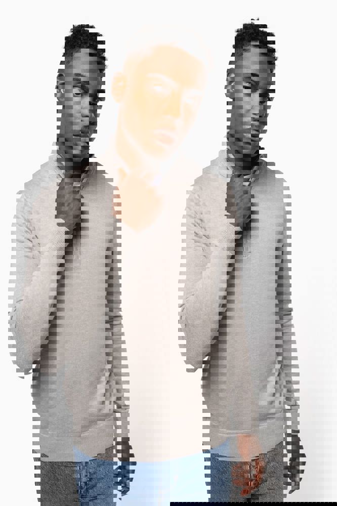 50% Baumwolle / 50% Acryl. Gerader Schnitt. Gedoppelter Stehkragen mit 1/4 Metall Reißverschluss im Raucheffekt. Nackenband.