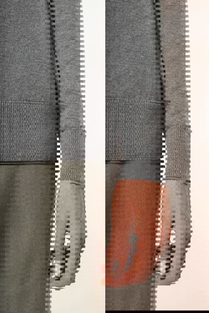 100 % Supima®-Baumwolle. Gekämmte Baumwolle. 12 gg Strick. Hochwertiges Material. Fully-fashioned: In der Form gestrickt und mit einer Mesh-Maschine zusammengesetzt. 1 x 1 Rippstrick an Halsausschnitt, Ärmelbündchen und Saum.