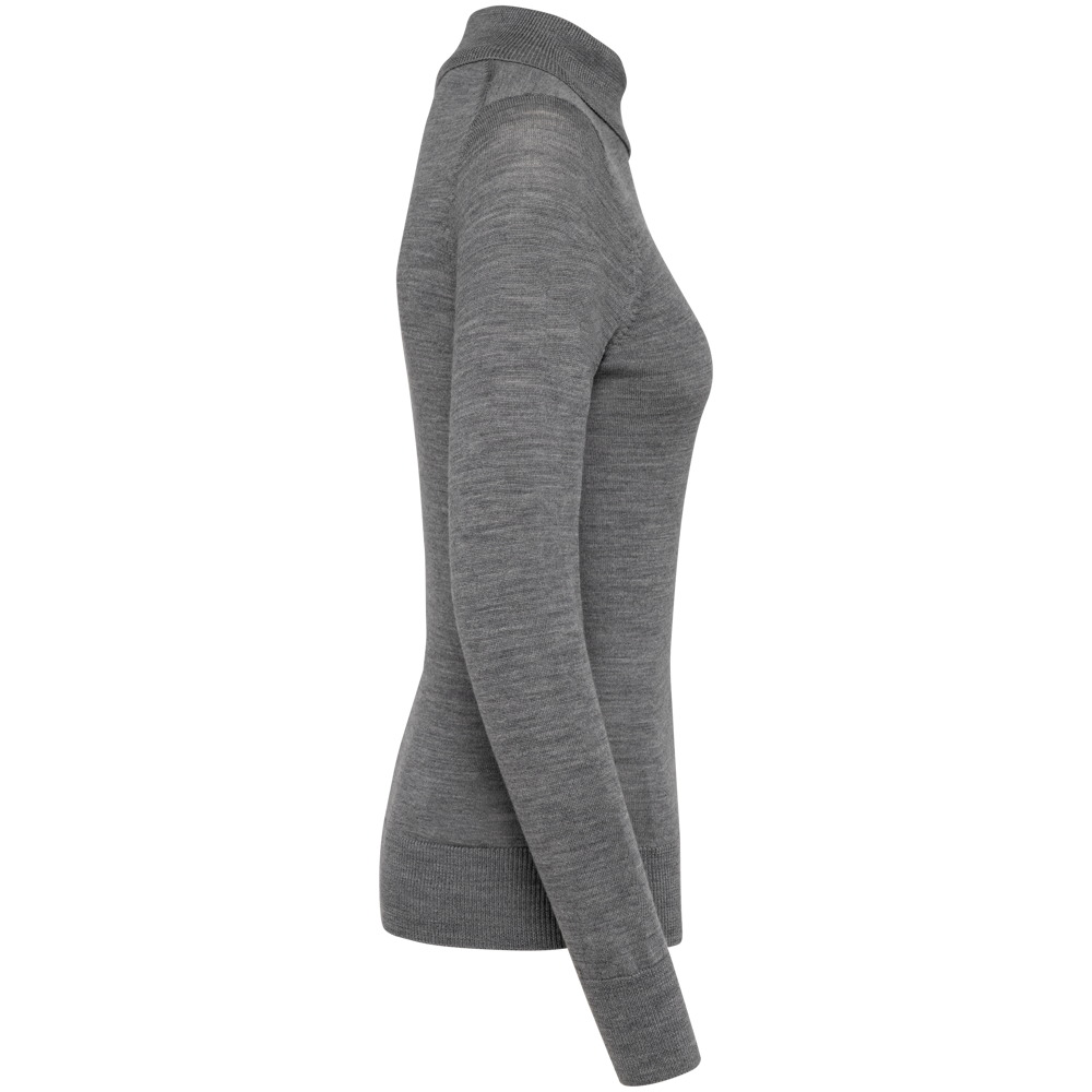 100 % Merinowolle. Extra feine, gekämmte Wolle. 14 gg Strick. Fully-fashioned: In der Form gestrickt und mit einer Mesh-Maschine zusammengesetzt. 1 x 1 Rippstrick an Rollkragen und Saum.