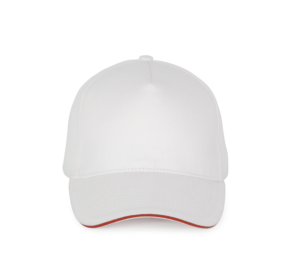 100 % Baumwolle. 5-Panel-Kappe. Über eine Metallschnalle verstellbarer Verschluss mit Schlaufe mit automatischer Blockierung.