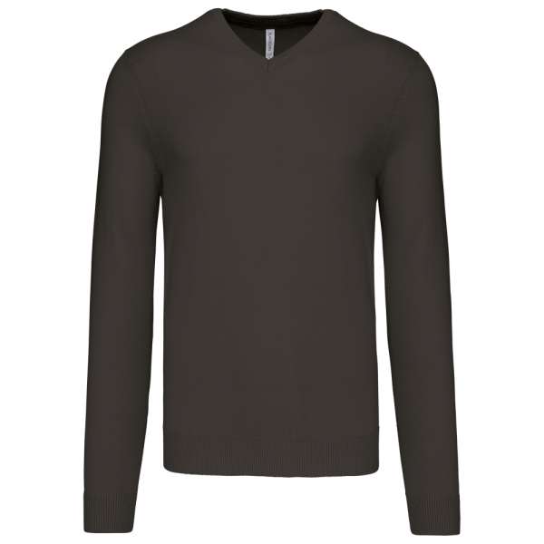 50% Baumwolle / 50% Acryl (12 gg Strick). Gerader Schnitt. Gedoppelter Rippstrickkragen. Nackenband.