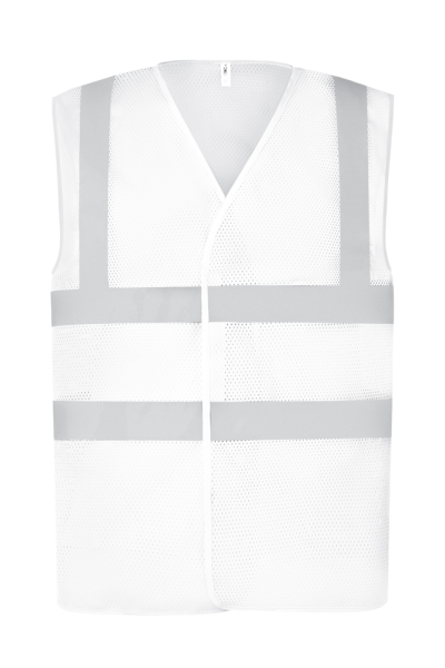 100% polyester. 100 % recycelter Polyester. Hergestellt aus PET-Kunststoffflaschen. Aus atmungsaktiver leichter Maschenware. 5 cm breite Reflexstreifen um den Körper und auf jeder Schulter. Klettverschluss an der Vorderseite. Entspricht American National Standard ANSI/ISEA 107-2004 & European Standard EN ISO20471: 2013 Klasse 2 : nur Hi Vis Orange und Hi Vis Yellow.